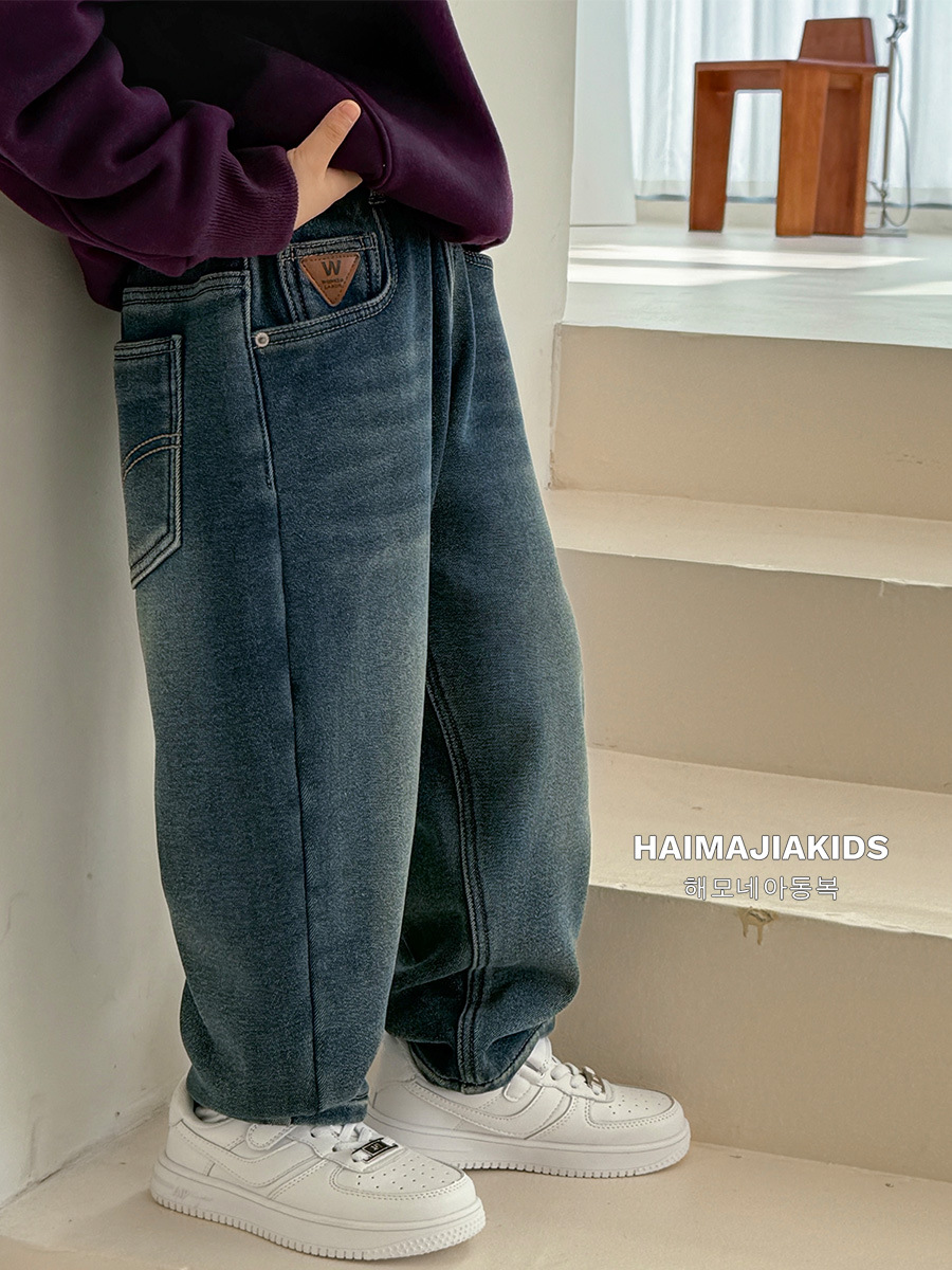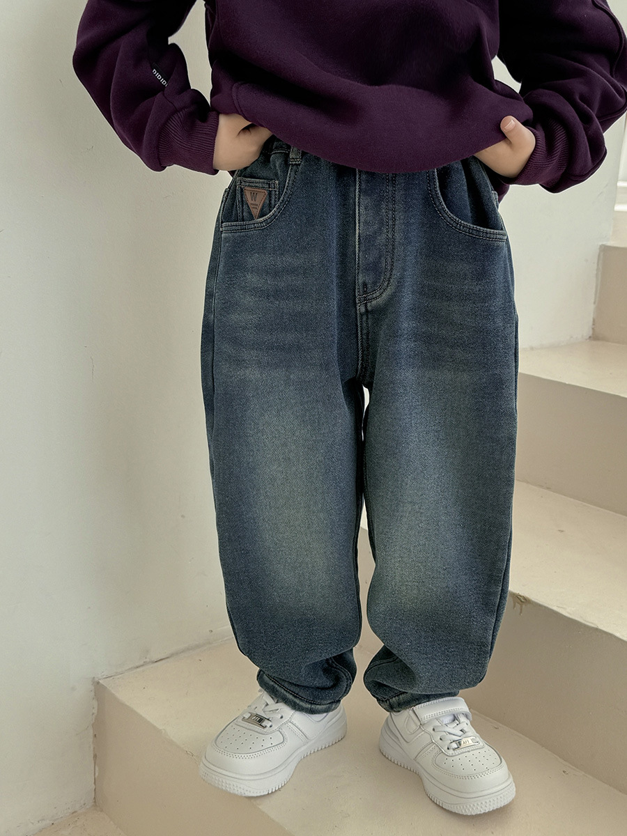 Boys' fleece jeans winter new style children's trousers winter Korean style pants thickened children's clothing